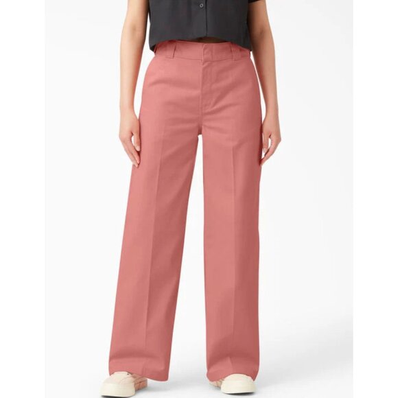 Dickies Womens Stonewashed Wide Leg Work Pants Rinsed Rosette Pink