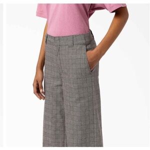 Dickies Women's Bakerhill High Rise Wide Leg Pants Brown Plaid Size 12R new