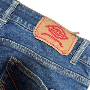 Classic straight leg jeans with signature Dickies logo patch on back pocket.