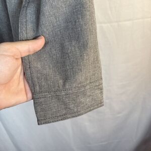 The Dickies Womens LongSleeve TempIQ® Cooling Utility Shirt in Gray, size Large, is a stylish and versatile button-up top perfect for casual occasions in all seasons. Made from a blend of polyester and spandex, this collared shirt features a snap closure, logo accents, and convenient pockets. With a solid pattern and long sleeves, this shirt offers a comfortable regular fit that is easy to care for with machine washable instructions. Perfect for the modern woman on the go, this shirt combines practicality with a touch of style from a trusted brand like Dickies.