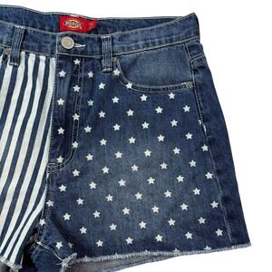 Dickies Women's Size 7 Juniors Stars & Stripes Denim Frayed Hems Shorts NEW NWT