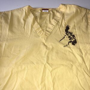 Dickies Women’s Yellow Scrub Top Embroidered Philippine Islands Pockets Size XS