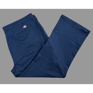 These Dickies pants are perfect for any industrial or workwear occasion. They come in a stylish navy blue color and a relaxed fit, with a straight leg style and a flat front. The pants feature a 4-pocket design, including slash pockets, and are made of 100% cotton material, making them both comfortable and durable.
