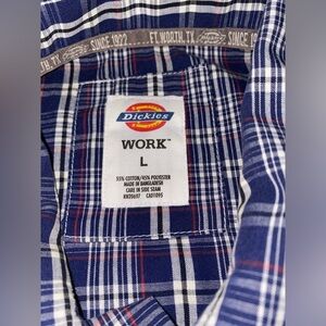 Dickies Work Plaid Collared Men L Button Short Sleeves Shirt Casual Relax Fit