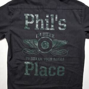 Dickies Work Shirt Men's Black Short Sleeve Small S Custom Phils Bar Graphic