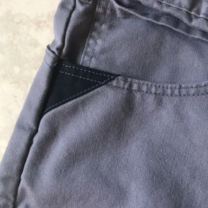 2 pairs; Navy & Gray. Both have reinforced front pockets. Gray pair has paint on back (see photos). Overall they are both in great condition other than the paint stain.