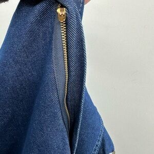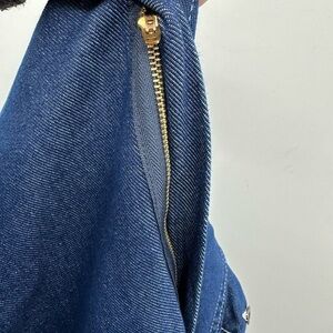 Dickies big man adjustable strap overalls. Blue with red accent, side button closure, front zip pocket, crotch zip closure.