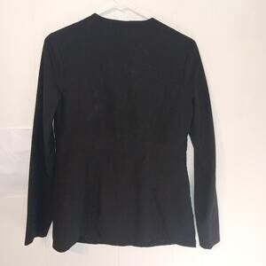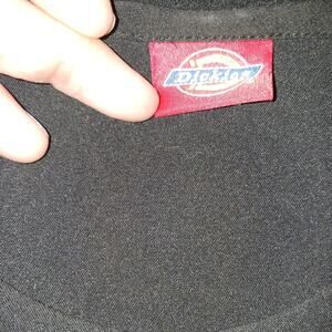 Long sleeved uniform top has exposed snap closure and 3 front lower pockets. There is no fabric content tag but it has slight stretch and a soft feel. I've never seen a dickies top in this style but I imagine it would be good for catering or house keeping. I actually wore it out, it's super cute. Very good pre-owned condition.
