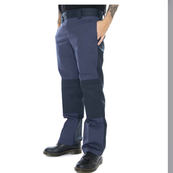 Color blocked dickies work inspired pants. Navy and ink blue. Straight leg, generous cut.