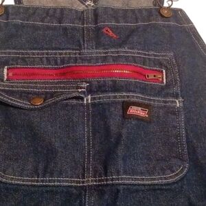 Dickies denim Blue bib overalls Relaxed Fit Front From Kansas! Pockets EYC sz L