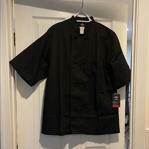 Stylish and functional double-breasted design. Short sleeves for ease of movement. Ideal for professional settings.