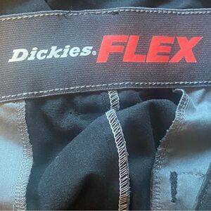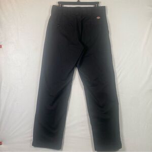 Dickies Flex Black Pants Size 32. Excellent pre-owned condition. Front hook and zipper closure. 2 front and back pockets with one leg pocket. Polyester cotton blend. Measures approximately waist 31", inseam 31", rise 10.5".