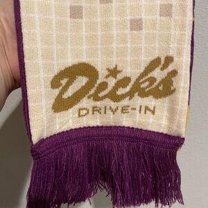 Two sided, fringe ends. Great scarf to represent famous drive in.