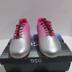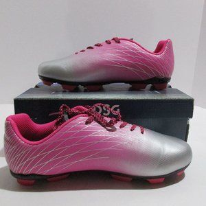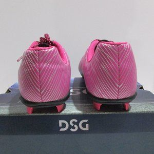 AVAILABLE IS AN AUTHENTIC PAIR OF DICK'S SPORTING GOODS OCALA 1.0 SOCCER CLEATS SIZE 5.5M US. THE SHOES ARE STYLE # DSGYP18-PNK. THE SHOES ARE PINK AND SILVER. THE SHOES ARE NEW IN THE BOX AND RETAILS FOR $24.99. DON'T MISS OUT ON THIS TREMENDOUS DEAL ACT NOW!!
