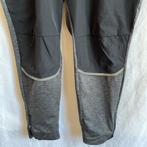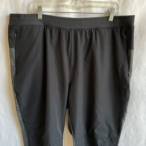 Dick’s Sporting Goods black and gray heather joggers with knee flap covering air vents to help keep you cool. Size XXL. Two zippered front pockets. One back waistband zippered pocket. Zippers at ankles.