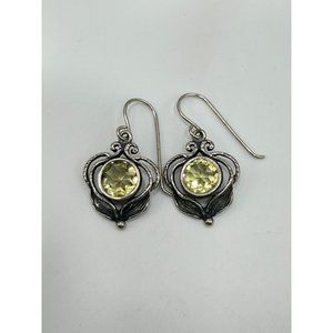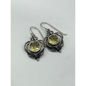 Didae Israel 925 Earrings Sterling Silver Yellow Quartz Pierced Drops Dangles
