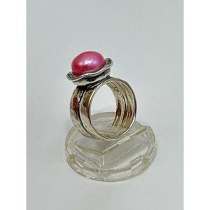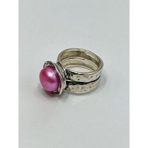 Didae Israel Sterling Silver Dyed Pink Pearl Ring Size 5 925 Hammered Design
