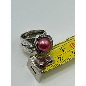 Didae Israel Sterling Silver Dyed Red Pearl Ring Size 5 925 Hammered Design
