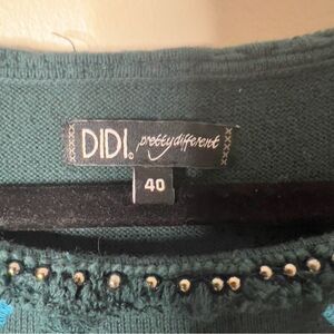 Didi Pretty Different Womens Embroidered Embellished Green Boho Sweater Dress. Size 40.