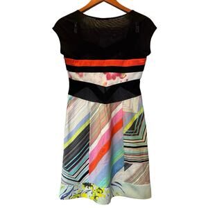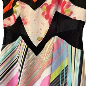 Didier Parakian Dress 4 Green Black sleeveless Artsy A-Line Geometric 36 mesh