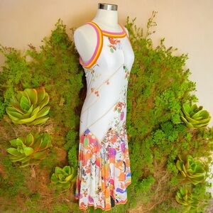Didier Parakian Multicolored Floral Art Printed Flowy Sun Dress.