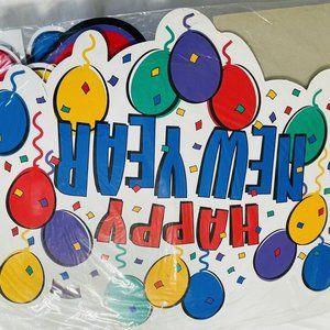 Die Cut Honeycomb NEW YEARS Hanging Decorations 24” In Package Retro Amscan