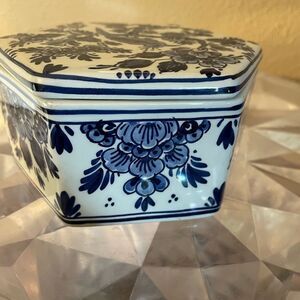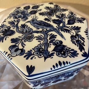 Dieft Blauw Blue and White Bird Vintage Trinket Box Hand Painted Made inHolland