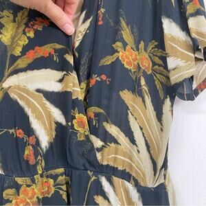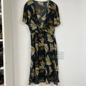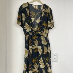 Diega Blue & Green Tropical Print Faux Wrap Midi Dress Womens XS