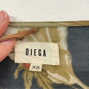 Diega Blue Green Tropical Print Faux Wrap Midi Dress Womens XS Beachy Vacation