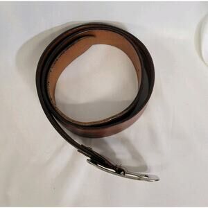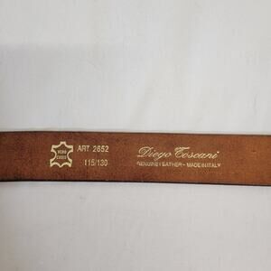Diego Toscani Brown Leather Silver Tone Buckle Belt Made In Italy Size 42-46. European size 115/130. Excellent Pre-owned condition with no rips, stains or tears. Minor scratches/distressing along the leather noted.