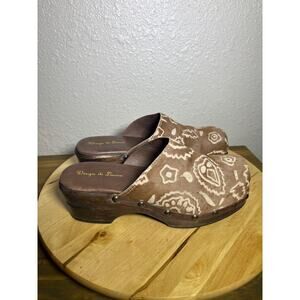 Diego di Lucca Brazil Womens Calf Hair Clogs Mules Brown Wood Heel size 10