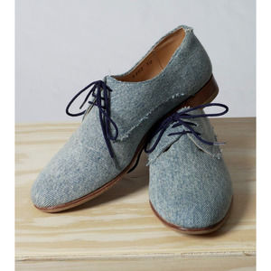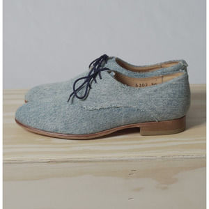 Dieppa Restrepo Italian Blue Tweed Lace up Shoes Round Toe Loafers Size 6