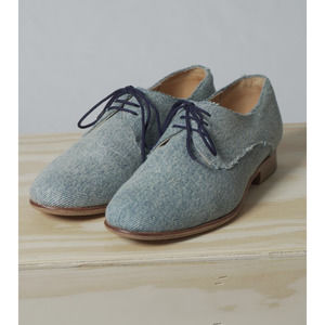 Dieppa Restrepo Italian Blue Tweed Lace-up Shoes Round Toe Loafers Size 6