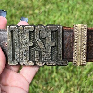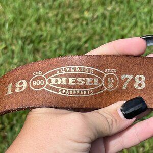 Diesel 1978 Metal Logo Buckle Designer Cow Leather Belt Size 38