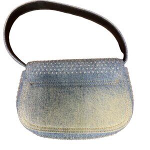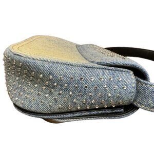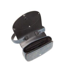 Combining Diesel's denim expertise with a highly recognizable shape, this women's bag is crafted from solarized denim, featuring a distinctive sun-faded effect. The iconic half-moon silhouette is adorned with all-over rhinestones on the flap, and crystal-encrusted Oval D hardware.
