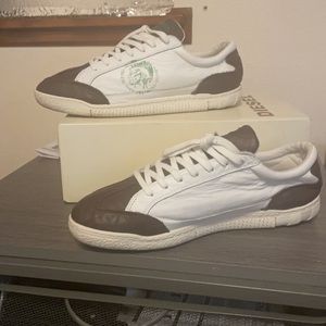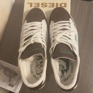 Diesel only the brave. The leather is soft like butter, brand new. I hope to find em a new home