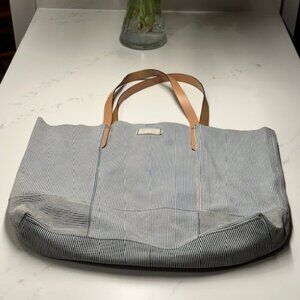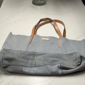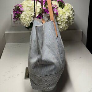 Diesel All Leather Inside & Out Blue & White Stripe Tote Shoulder Bag EUC