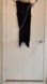 Chic black dress with an asymmetrical cut. Features a striking silver chain detail. Ideal for a contemporary style.