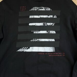 Stay bold and stylish in this Diesel black graphic sweatshirt, featuring a unique design with striking red and white accents. Made from soft 100% cotton, this sweatshirt combines comfort with a streetwear edge—perfect for layering in any season. Gently used and in great condition (see photos).