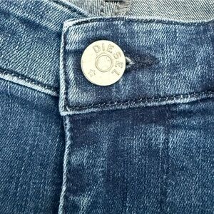 These Diesel skinny jeans in a rich blue hue feature a stylish medium to dark wash with natural fading and whiskering for a trendy, lived-in look. The full-length design offers a sleek silhouette, perfect for casual outings or a night out. Crafted from quality denim, they ensure both comfort and durability.