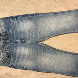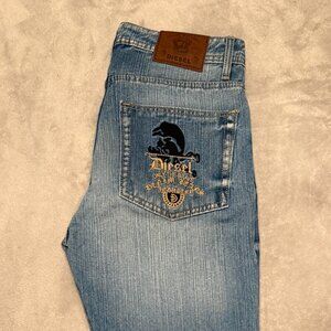 Brand new Diesel jeans, made in India. soft blue with subtle white washed shades Snug fit at the waist and hips, wide-leg at the bottom for ultimate comfort and style. Perfect for casual outings, pairing easily with tees, jackets, or sneakers. A trendy must-have for your wardrobe Size,32!”