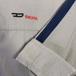 Diesel Button Up Shirt Men’s Size Large Gray Long Sleeve Logo Striped Arm Detail