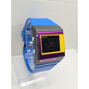 Diesel DZ7151 Digital Quartz Watch Rainbow Bezel Blue Silicone Strap New Battery
