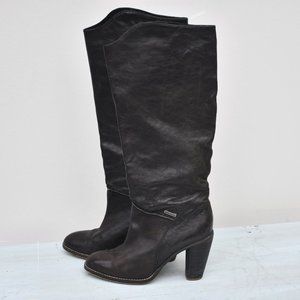Chic black leather boots with a stylish heel. Crafted from premium leather. Ideal for any occasion. 15.5” calf circumference