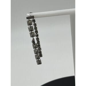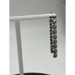 Diesel Designer Signed Stainless Steel Long Square Studded Dangle Earrings