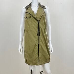 Diesel Dress Beaded Collar Grunge Punk Khaki Utility Glam Rock Zip Y2K Small.