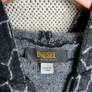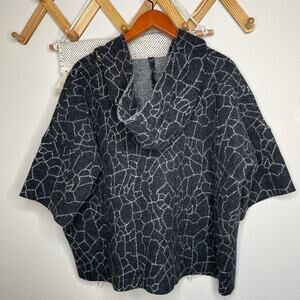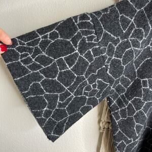 Diesel Giraffe Print Geometric Wool Zip-Up Poncho size small. Hooded poncho with full front zip. Side raw hemmed pockets. Short sleeve. Great to layer over a long sleeve or sweater. Excellent condition, like new. No flaws and no signs of wear. Giraffe or geometric pattern.