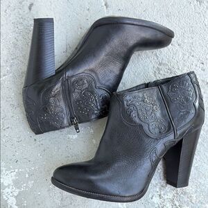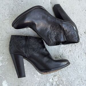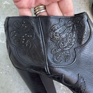 Check out the pictures. These are a great condition, barely used. Block heel style that is 4 inches tall.