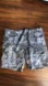 Paisley and grey board shorts with intricate white patterns. Perfect for swimming and casual wear. Features a stylish design.