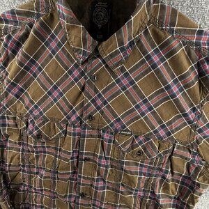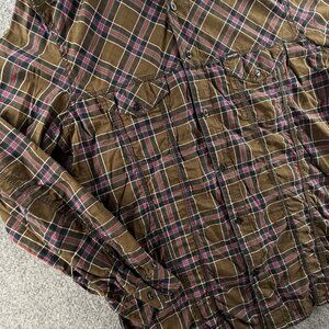 Diesel Industry Green Plaid Long Sleeve Button Up Shirt XL Double Pocket Logo